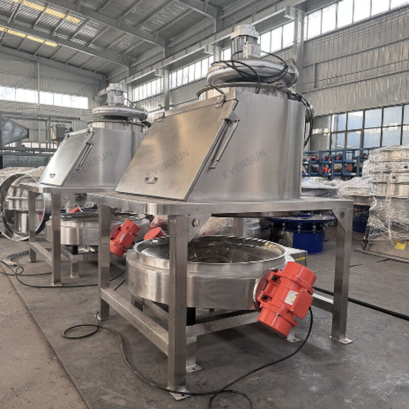 The combination of the dust-free feeding station and the direct discharge screen achieves efficient and clean production through a sealed connection and gravity flow. The materials are unpacked in the negative pressure chamber of the dust-free feeding station, and the dust is immediately collected. The materials then fall directly into the downstream direct discharge screen by gravity. The direct discharge screen vibrates to quickly screen the materials, with the qualified fine particles falling vertically out and the coarse particles being separated to the side. The entire process from feeding to screening is seamless, effectively controlling the dust while achieving rapid and continuous processing of the materials.